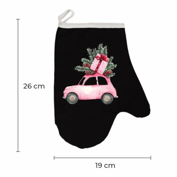 Rukavicu zdobí rozkošný motív ružového autíčka s darčekmi a vetvičkami, ktorý symbolizuje hravosť, rodinné teplo a čaro Vianoc. Vďaka svojmu modernému dizajnu sa stane nielen praktickým, ale aj štýlovým doplnkom vašej kuchyne počas sviatočných dní.