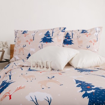 Vianočné obliečky Frostelle so zapínaním na zips prinesú do vašej spálne čarovnú sviatočnú atmosféru. Vyrobené zo 100 % kvalitnej bavlny delux, sú hebké, priedušné a príjemné na dotyk. Moderný zimný vzor s jeleňmi, stromčekmi a snehom spríjemní váš spánok a zútulní interiér počas celých Vianoc.