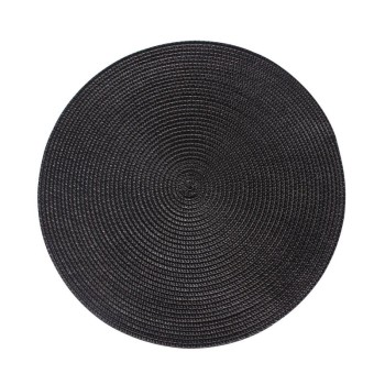 Podložka pod tanier Splot v elegantnom čiernom vyhotovení predstavuje štýlový a funkčný doplnok pre váš jedálenský stôl. Vďaka svojmu precíznemu tkanému vzoru a kruhovému tvaru s priemerom 38 cm spoľahlivo ochráni povrch stola pred znečistením alebo teplom. Táto moderná podložka dodá každému stolovaniu nádych vkusnej elegancie a výborne zapadne do akéhokoľvek interiéru.