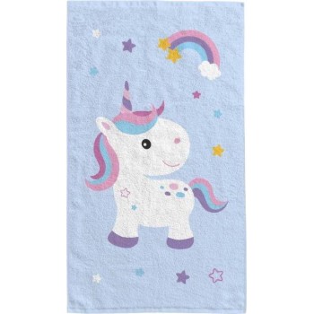 Detský uterák FARO Unicorn 30×50 cm je vyrobený z mäkkej a savnej 100 % bavlny, ktorá je šetrná k citlivej detskej pokožke. Rozkošný motív bieleho jednorožca na jemnom modrom podklade poteší každú malú milovníčku kúziel a fantázie. Uterák rýchlo schne, je ľahký, praktický a vďaka menšiemu rozmeru ideálny do škôlky, školy aj na každodenné používanie doma.