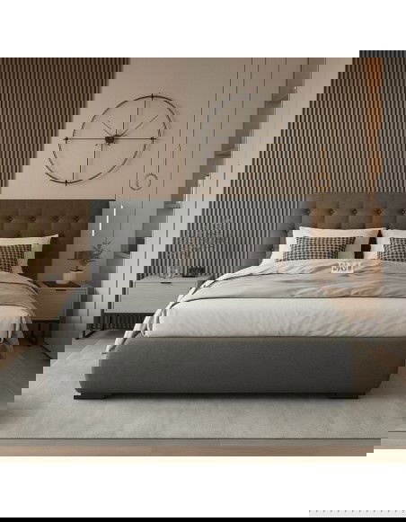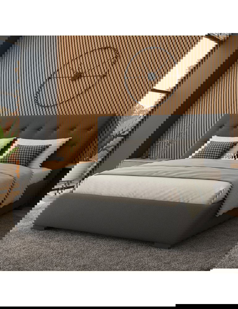 Manželská posteľ Aria s trendy prešitím čela s gombíkmi rozžiari každú spálňu. Posteľ je vyrobená na Slovensku a má úložný priestor po celej vnútornej dĺžke a šírke. Vďaka kvalitnej konštrukcii a pevnému kovaniu posteľ nevŕzga.